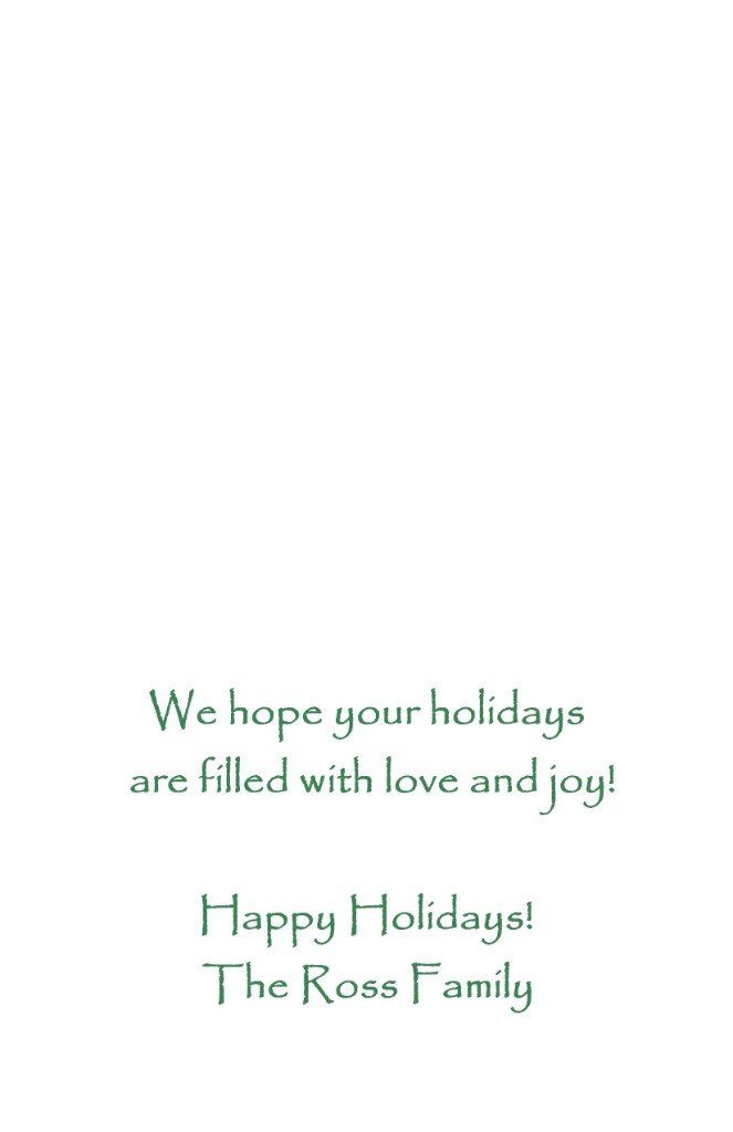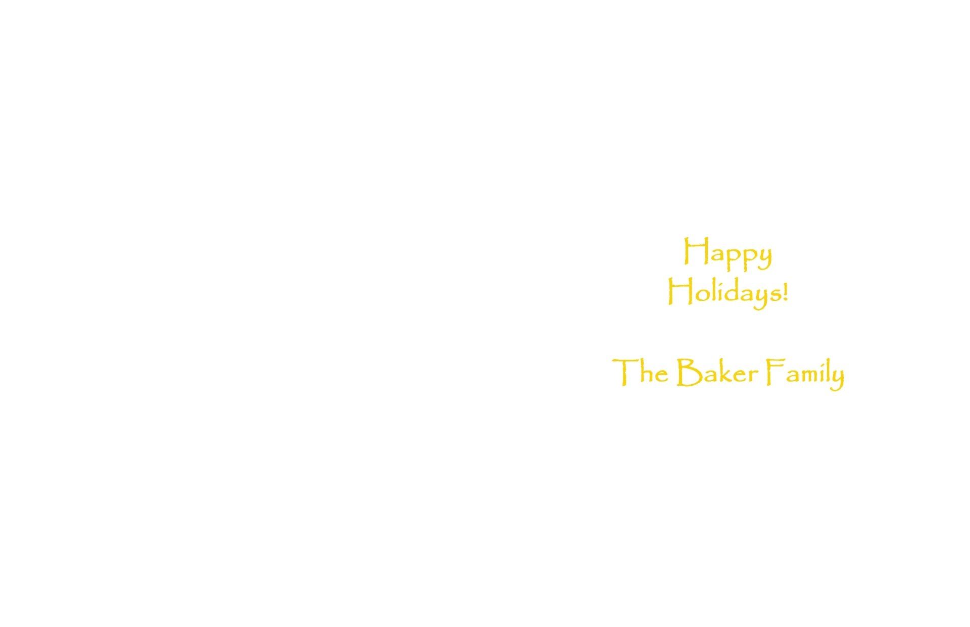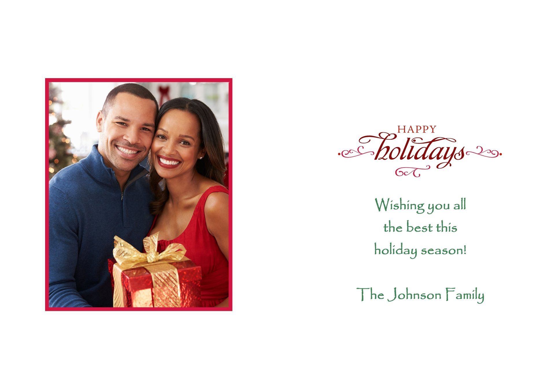 Holiday folded cards are available in sets of 24 and come with blank white envelopes. You can customize with your favorite photos as well as choose font styles and colors. You also have a choice if you'd like the cards printed on standard paper, standard paper with a coating, white pearl, antique pearl or linen paper stock. Choose from 5x7 or 4.25x5.5 card sizes.