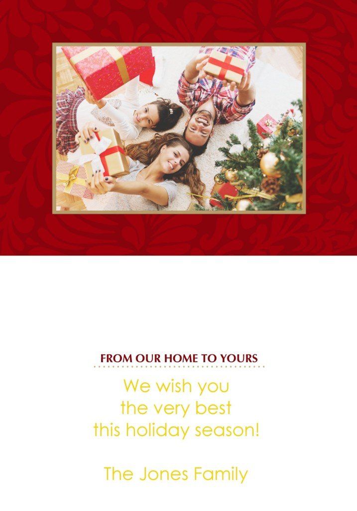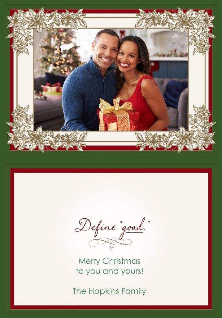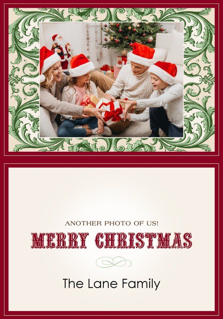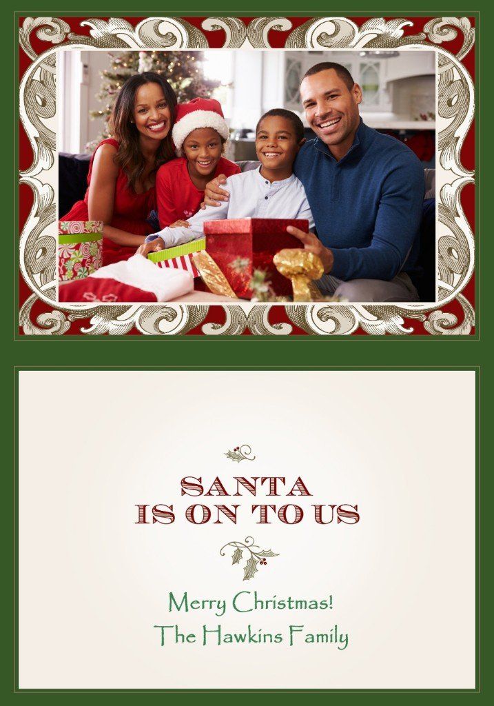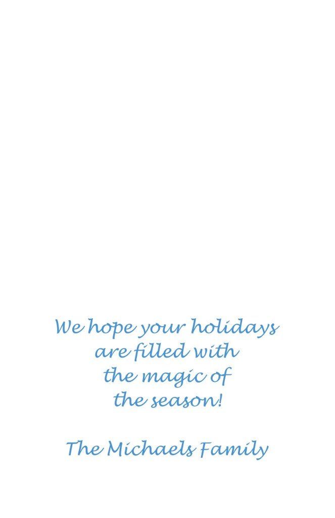 Holiday folded cards are available in sets of 24 and come with blank white envelopes. You can customize with your favorite photos as well as choose font styles and colors. You also have a choice if you'd like the cards printed on standard paper, standard paper with a coating, white pearl, antique pearl or linen paper stock. Choose from 5x7 or 4.25x5.5 card sizes.